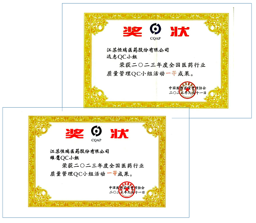 永利皇宫官网医药荣获2023年度全国医药行业质量管理QC小组活动一等奖