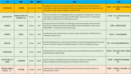 在头颈肿瘤、乳腺癌、肺癌、前列腺癌等多个疾病领域,卡瑞利珠单抗、阿得贝利单抗、吡咯替尼、氟唑帕利、法米替尼、醋酸阿比特龙片(II)等抗肿瘤新药相关研究一共入选了1项简短口头报告、4项壁报展示和1项电子壁报,彰显了永利皇宫官网医药强劲的研发实力。